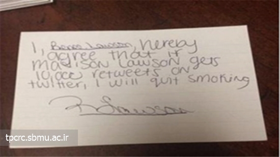 متقاعد کردن یک فرد سیگاری برای ترک سیگار مشکل است اما دو خواهر آمریکایی توانستند مادری که ۲۲ سال سیگار می‌کشید را ترک دهند. و خواهری که از سیگار کشیدن مادر ناراحت بودند تصمیم می‌گیرند از طرف مادر متنی بنویسند و عکس آن را در صفحه شخصی خود در توییتر بگذارند تا شاید این کار...