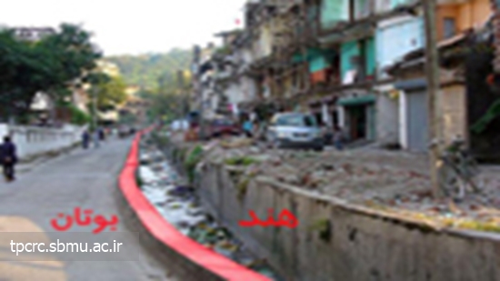 این عکس مربوط به یکی از مناطق مسکونی واقع در مرز بوتان و هند است که تنها یک جوی آب حدفاصل زندگی مردم دو کشور است و به همین دلیل تفاوت در مدیریت و زندگی شهری آنها به وضوح دیده می شود.