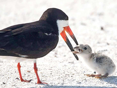 کارن میسون عکاسی که این تصاویر را در حساب کاربری خود در فیسبوک منتشر کرده است، در این باره می نویسد: «این نوع پرندگان غذای مورد نیاز خود را از طریق باز نگه داشتن نوکشان به هنگام شکافتن آب دریا تأمین می کنند. وقتی نوک پایینی به چیزی می خورد، نوک بالایی بسته می شود و بدین ترتیب نمی بینند که چه چیزی به منقار گرفته اند.»